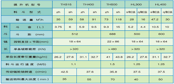 斗式提出升機,以礦用高強度環(huán)形鏈條牽引的有LH、TH型.以普通橡膠帶牽引的D型,可根據(jù)用戶需要選型。